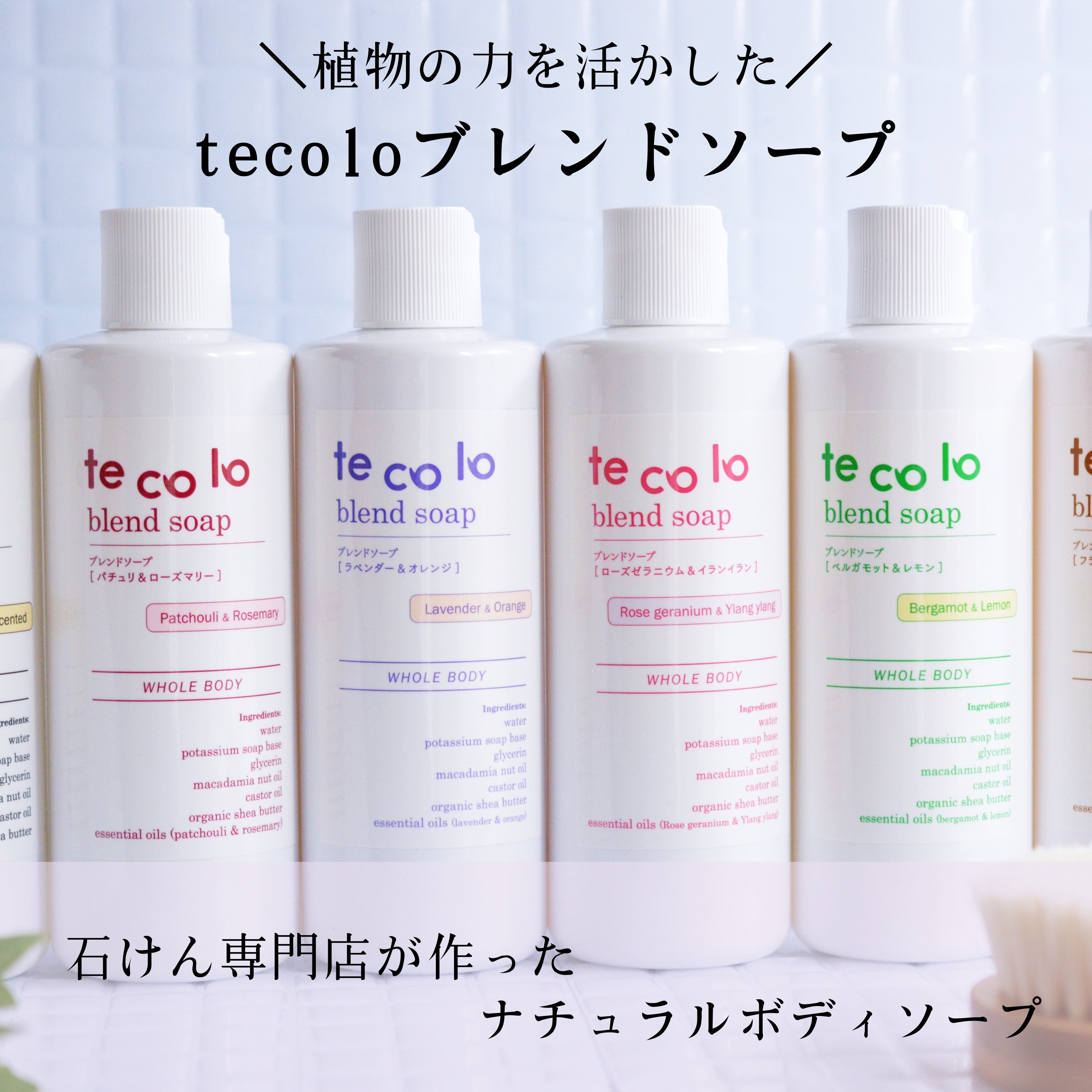 毎日のシャワータイムを特別な体験に演出してくれるtecoloブレンドソープで、心も体もリフレッシュしませんか?自然な香りに包まれながら、日々の疲れを癒す時間を大切にしてください。