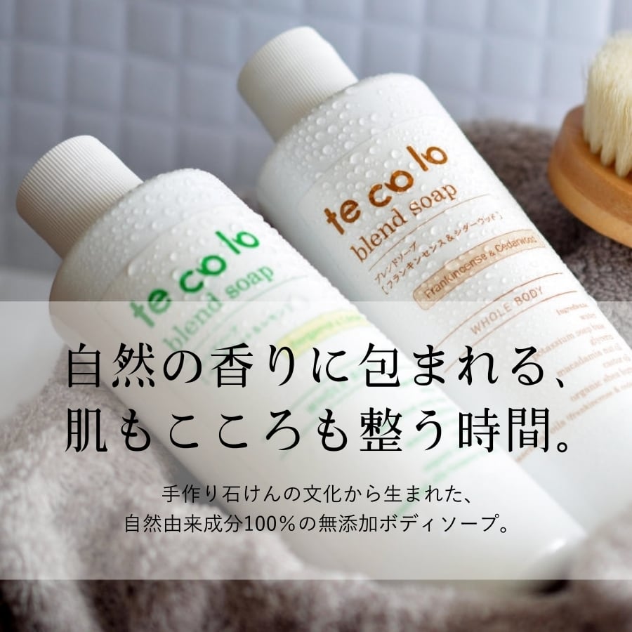 tecoloブレンドソープ フランキンセンス&シダーウッド 300ml は、お肌にいいものを使いたい方へ贈る特別なボディソープです。