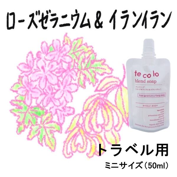 トラベル用50ml・tecoloブレンドソープ・ローズゼラニウム&イランイラン